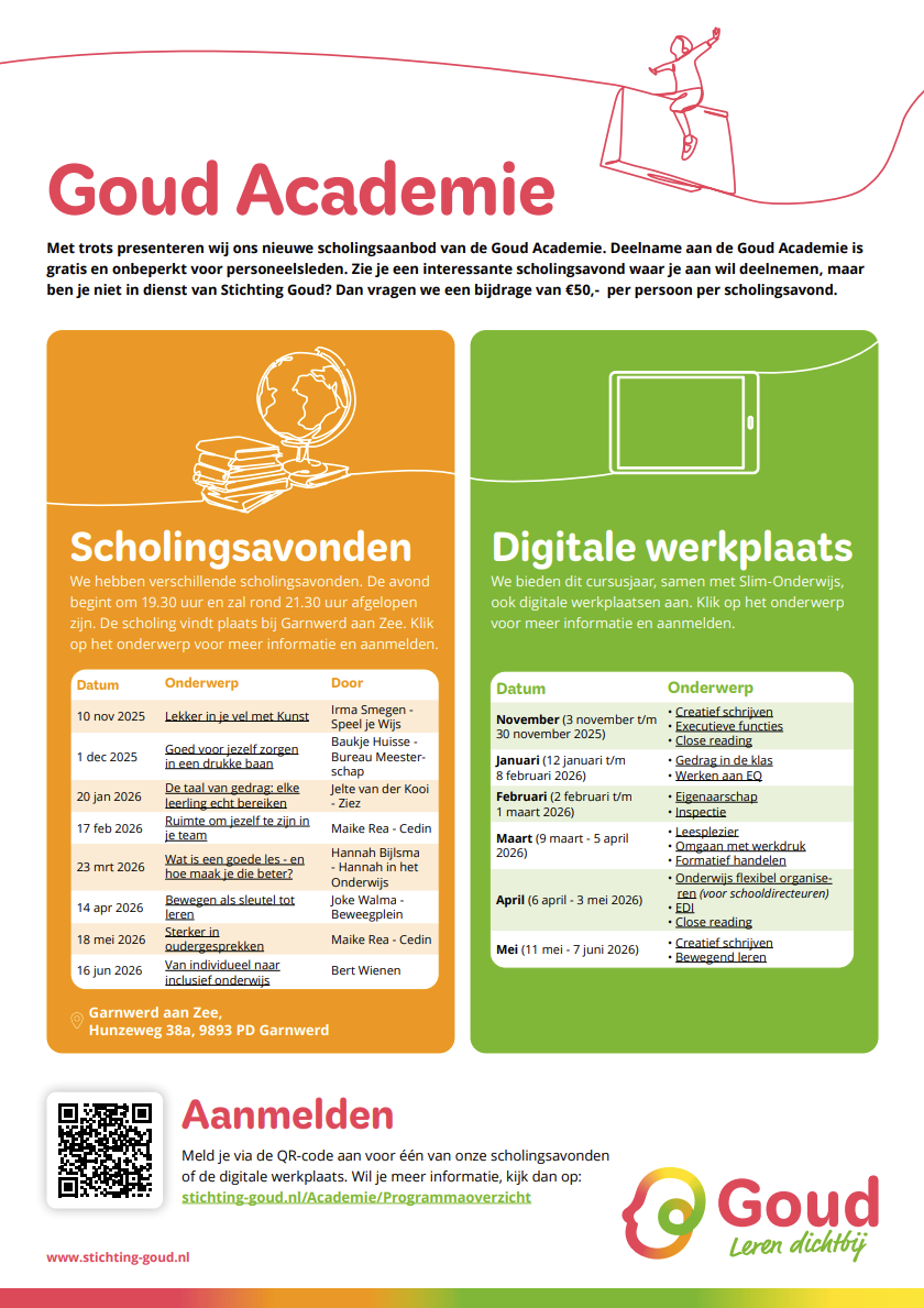 - 19.30 - 21:30 uur: Goud Academie Scholingsavond